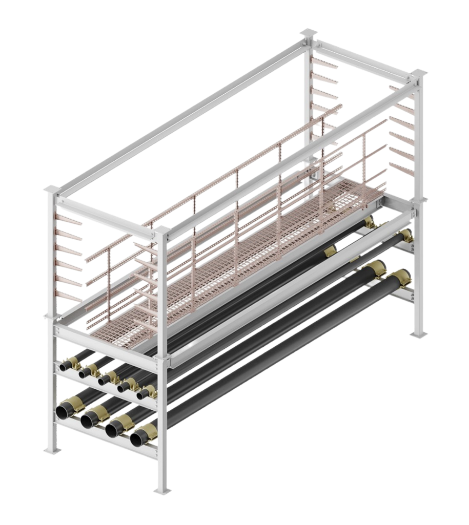 Модульные металлические конструкции для прокладки кабельных трасс, трубопроводов и инженерных сетей. Благодаря сборно-разборной конструкции они монтируются в среднем в 14 раз быстрее традиционных решений, подходят для любого рельефа и грунта, легко масштабируются в несколько ярусов. Эстакады рассчитаны на срок службы до 40 лет, не требуют тяжелой техники при монтаже и обеспечивают удобный доступ для ремонта и обслуживания инженерных сетей.