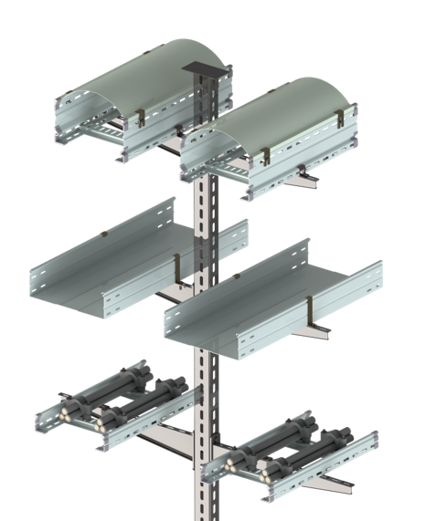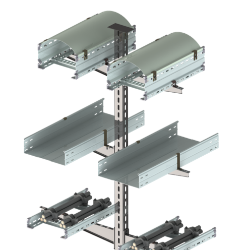 Решения для прокладки внутренних и внешних инженерных коммуникаций на промышленных объектах. В ассортименте представлены листовые и лестничные лотки, монтажные профили, консоли, крышки, а также фасонные секции для изменения направления прокладки кабельных трасс. Системы рассчитаны на нагрузки до 14,5 кН/м и предлагаются в девяти вариантах исполнения, что позволяет использовать их в проектах любой сложности, включая объекты с агрессивной средой и повышенными техническими требованиями к прочности и коррозийной стойкости.