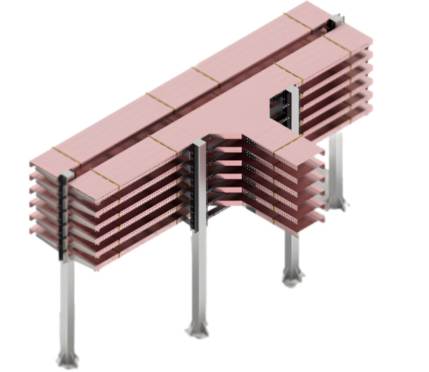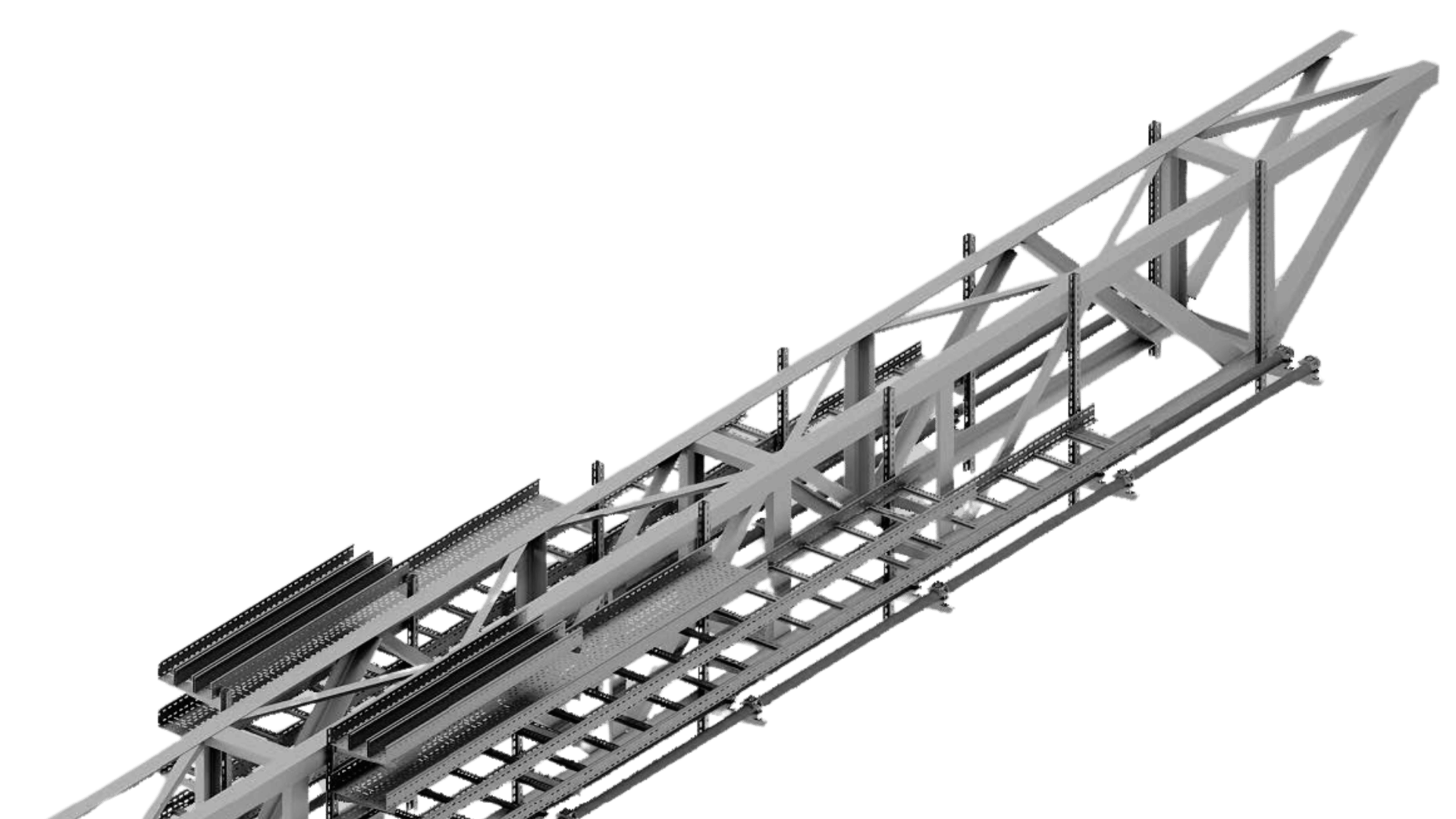 Надземные конструкции для прокладки кабелей и инженерных коммуникаций, отличающиеся сниженной металлоемкостью за счет использования стоек без несущих ригелей. Такие решения позволяют сократить затраты на материалы до 30% и ускорить строительно-монтажные работы до 70%. Болтовые соединения обеспечивают быструю сборку и разборку без применения спецтехники, а отсутствие огневых и лакокрасочных работ делает монтаж безопаснее и технологичнее.